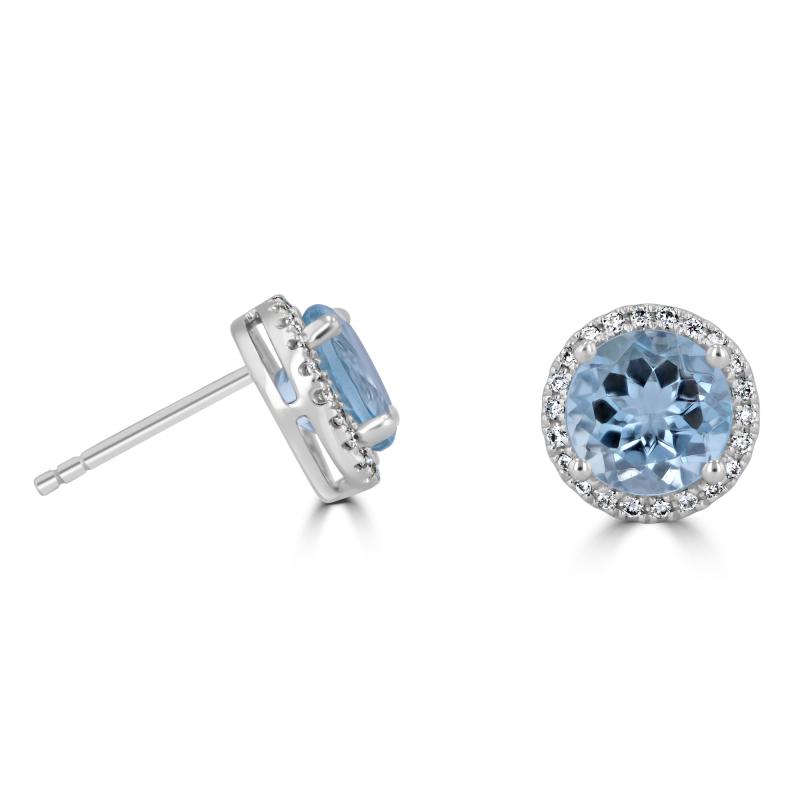 7MM ROUND AQUAMARINE HALO EARRINGS